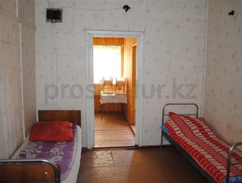 Постельные принадлежности, посуда, кровати панцирные, столы, стулья. Туалет общий.
