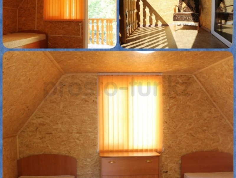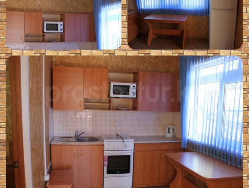 6-ти местные(двухэтажные) домики (отдельно стоящие № 1, №2, №3): На первом этаже расположена большая веранда,большая кухня , спальня с одной 2-х спальной кроватью. На втором этаже находится спальня , где стоит 4 односпальных кровати, кондиционер, балкон. В домике имеется: туалет, душ, горячая, холодная вода, кондиционер, кухонная плита с духовкой, микроволновка, холодильник, телевизор ЖК( спутниковое тв).