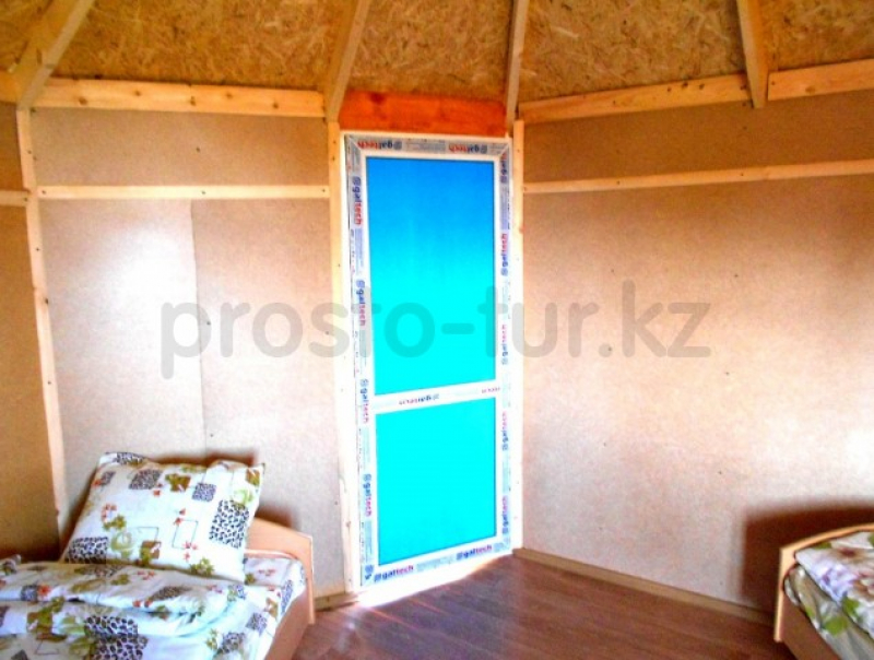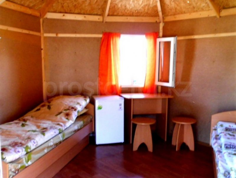 Цены 2025 года. Домик предназначен для двух человек и состоит из одной комнаты. Кухни в нем нет. В комнате расположены две 1,5-ные кровати с ортопедическими матрасами. Также в домике есть стол, стулья, холодильник, зеркало, постельное белье и вешалки для одежды. Домик расположен недалеко от пляжа. На территории имеется кафе, домики предусмотрены с трехразовым питанием на двух человек. Стоимость дополнительного питания (завтрак, обед, ужин) составляет 3500 тенге с человека в сутки для взрослых и 3000 тенге для детей до 7 лет. На территории есть волейбольная площадка, детская площадка и магазин. Отличные условия для рыбалки, лес, горы и песчаный пляж с пологими берегами. Это отличное место для отдыха всей семьей.