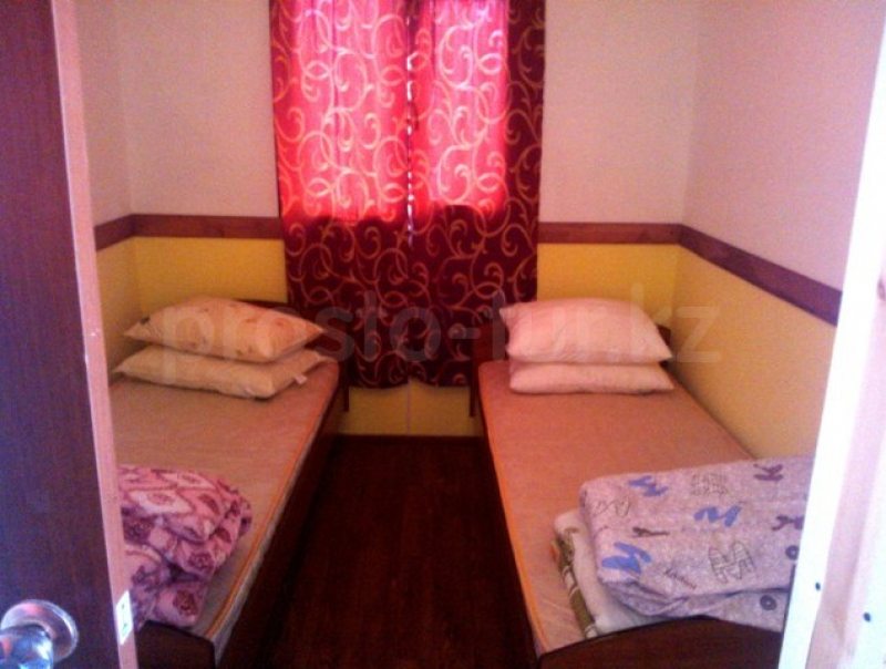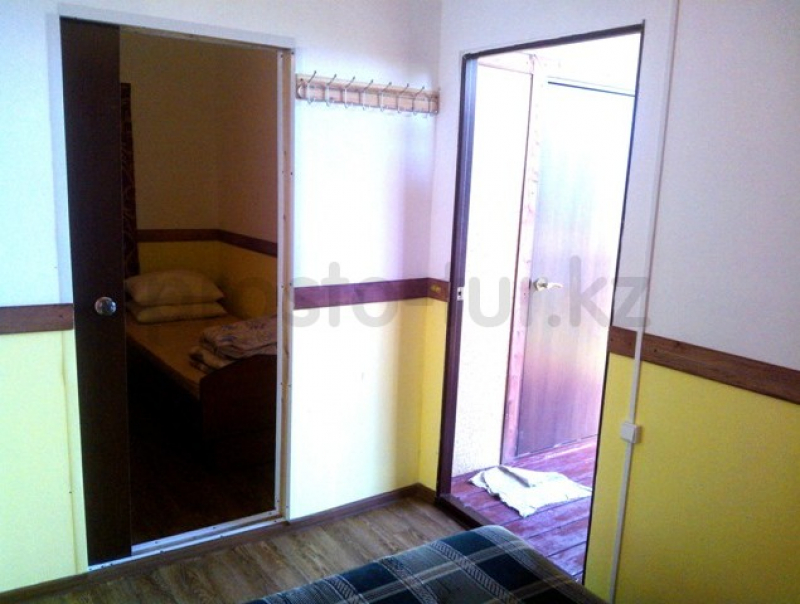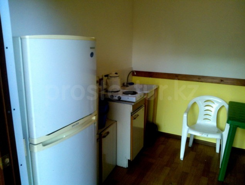 Цены 2025 года. Домик предназначен для проживания четырех человек. В нем две комнаты и кухня. В одной комнате установлен диван, а в другой — две 1,5-ные кровати с ортопедическими матрасами. В домике есть холодная вода. Кухня оборудована столом, стульями, посудой, холодильником, плитой и чайником. Домик находится всего в 45 метрах от пляжа. На территории комплекса есть кафе, где можно заказать еду. Стоимость трехразового питания (завтрак, обед, ужин) составляет 3500 тенге в сутки с роста и 3000 тенге с детей до 7 лет. Также на территории есть волейбольная площадка, детская площадка и магазин. Вокруг — отличные условия для рыбалки, лес, горы и песчаный пляж с пологими берегами. Это прекрасное место для отдыха всей семьи.