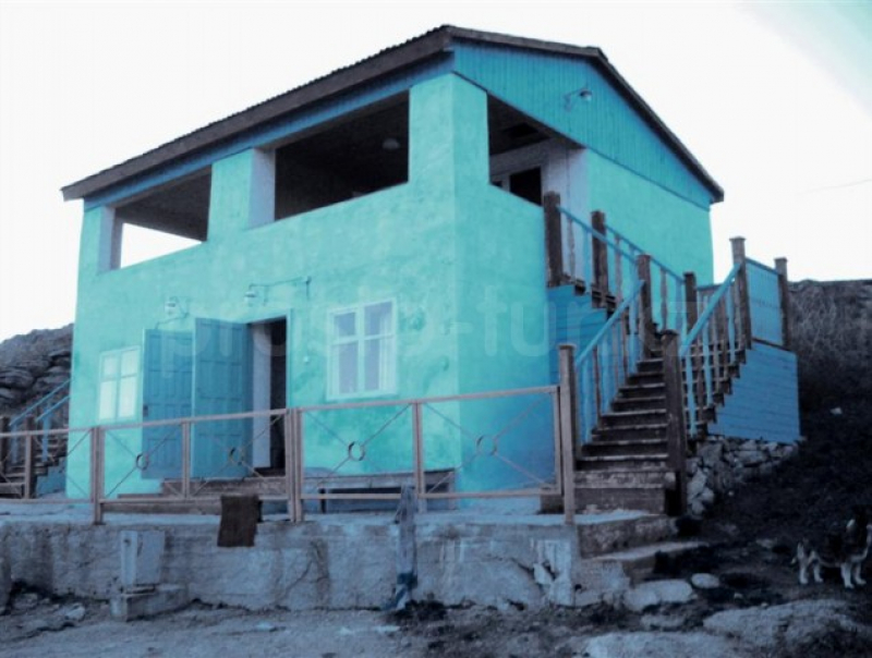 Посуда, ведра, 2 стола, шкаф, большая веранда, деревянные кровати, шезлонги. Вода в колонке. Дом имеет два входа.