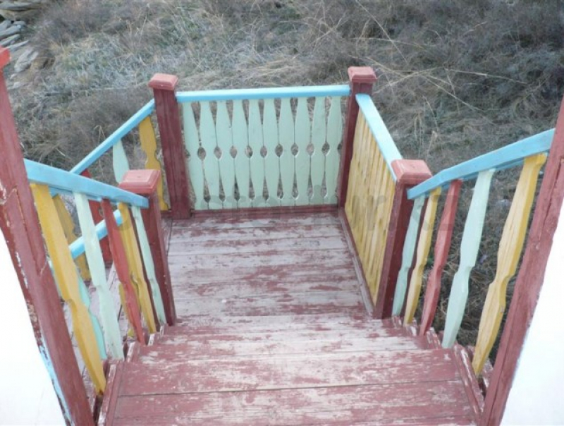 Посуда, ведра, 2 стола, шкаф, большая веранда, деревянные кровати, шезлонги. Вода в колонке. Дом имеет два входа.