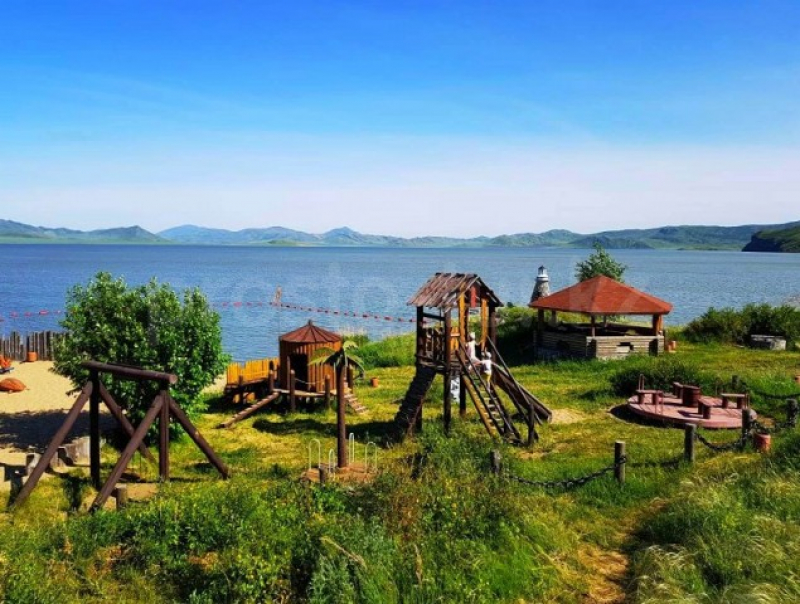 «Весёлый Роджер» – база отдыха Маршрут: От Усть-Каменогорска 112 км по трассе на г.Зыряновск. Среднее время в пути 2 часа. От пос.Новая Бухтарма 22 км (cмотрите здесь). Расположение: На холмистом берегу в живописном заливе Бухтарминского водохранилища. Год ввода в эксплуатацию: 2009. Тип базы: Для семейного отдыха. Пляж: Песчаный с деревянными лежаками. Дома: Каждый дом имеет веранду с панорамным видом на залив.